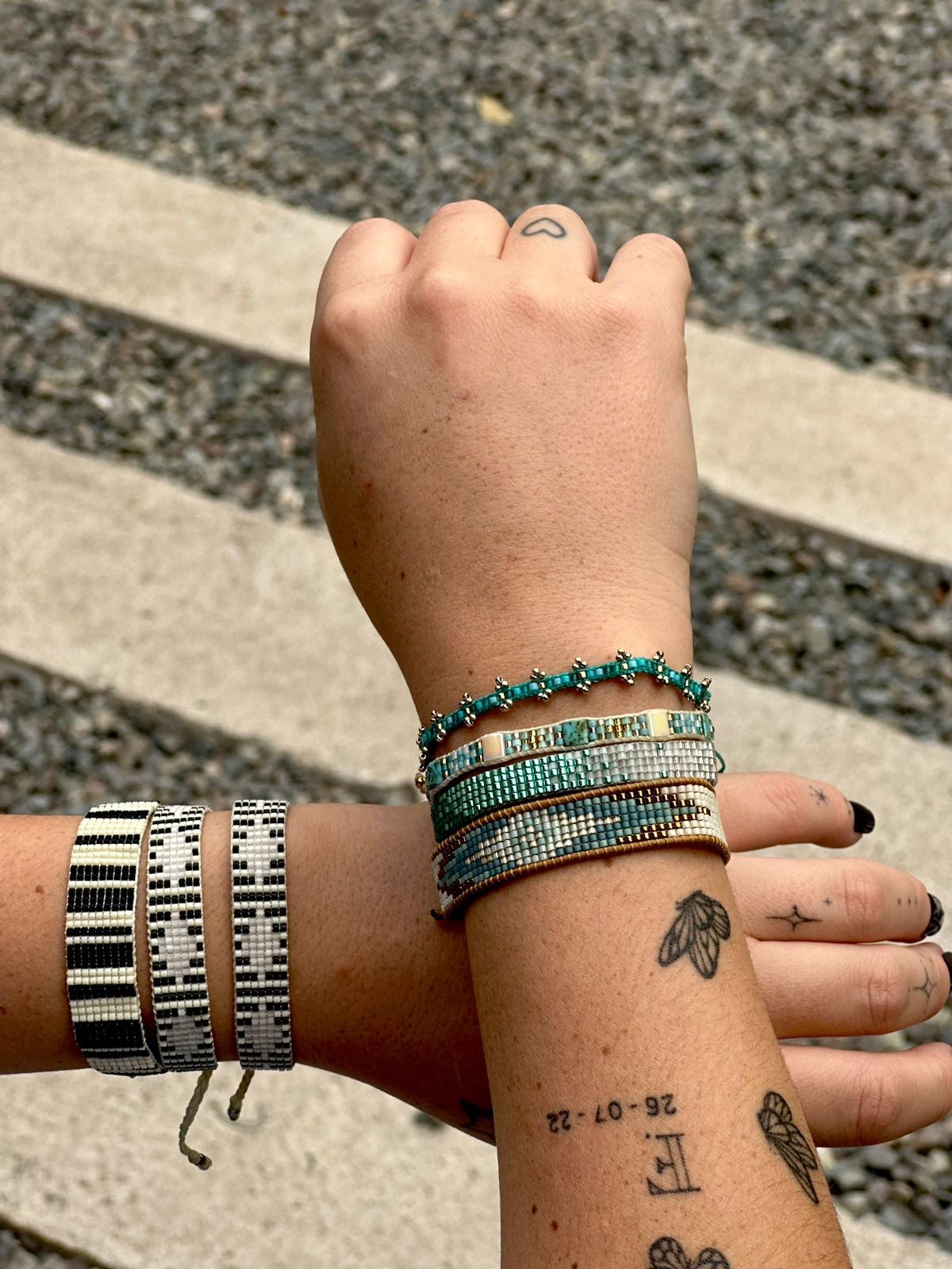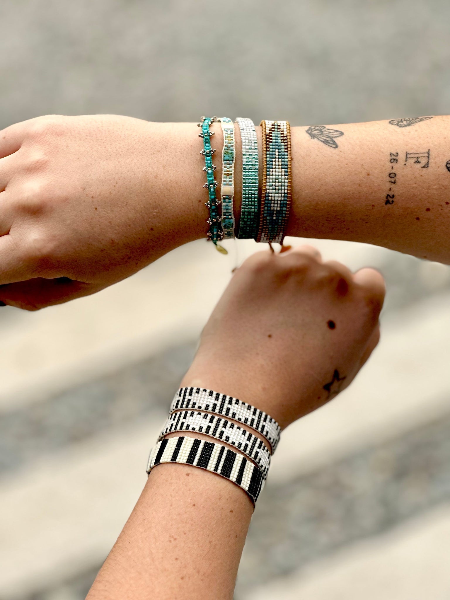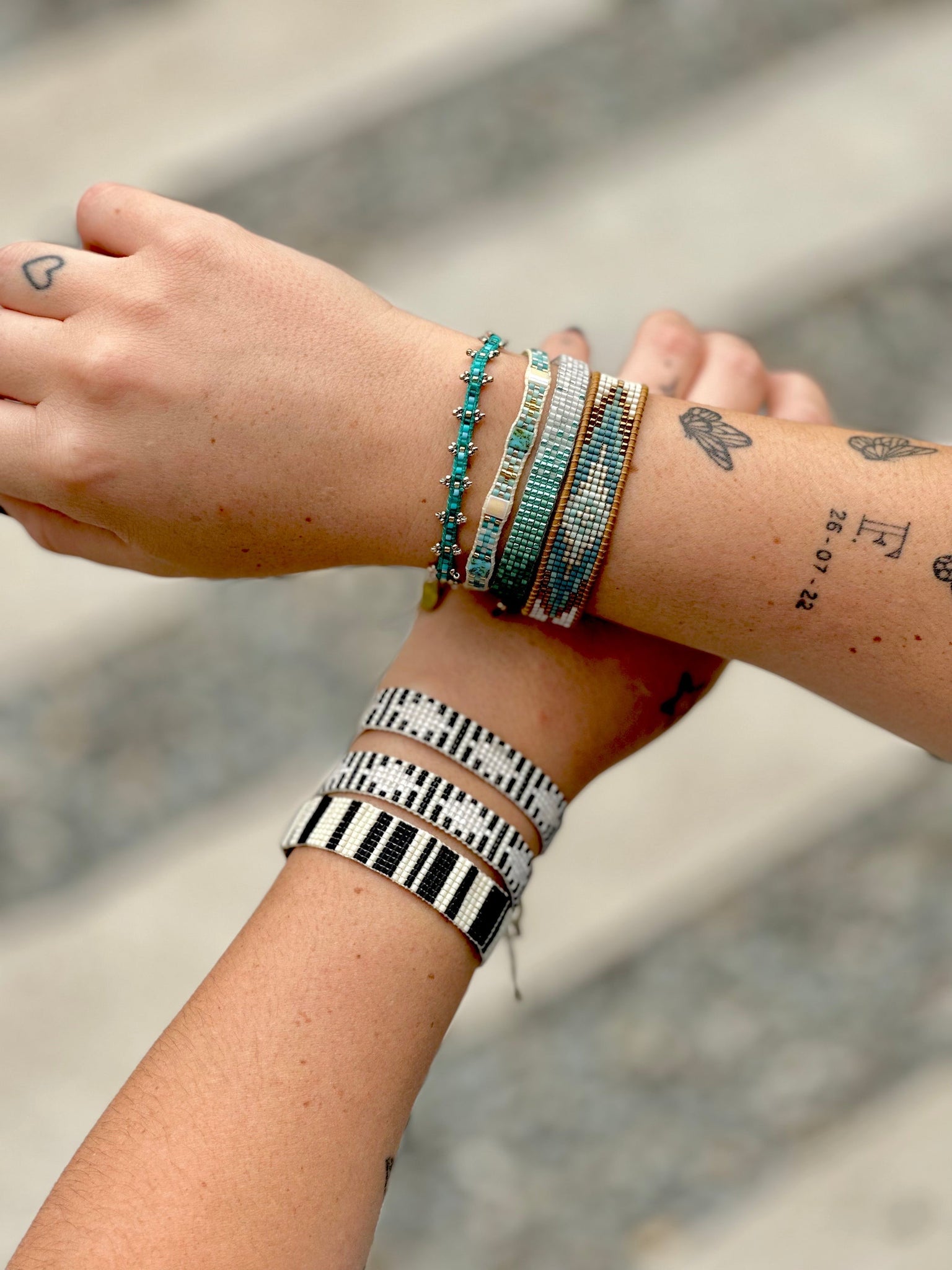 Pulsera Hecha a Mano con Cristales Checos y Porcelana Japonesa (Miyuki), cierre con nudo corredizo ajustable.