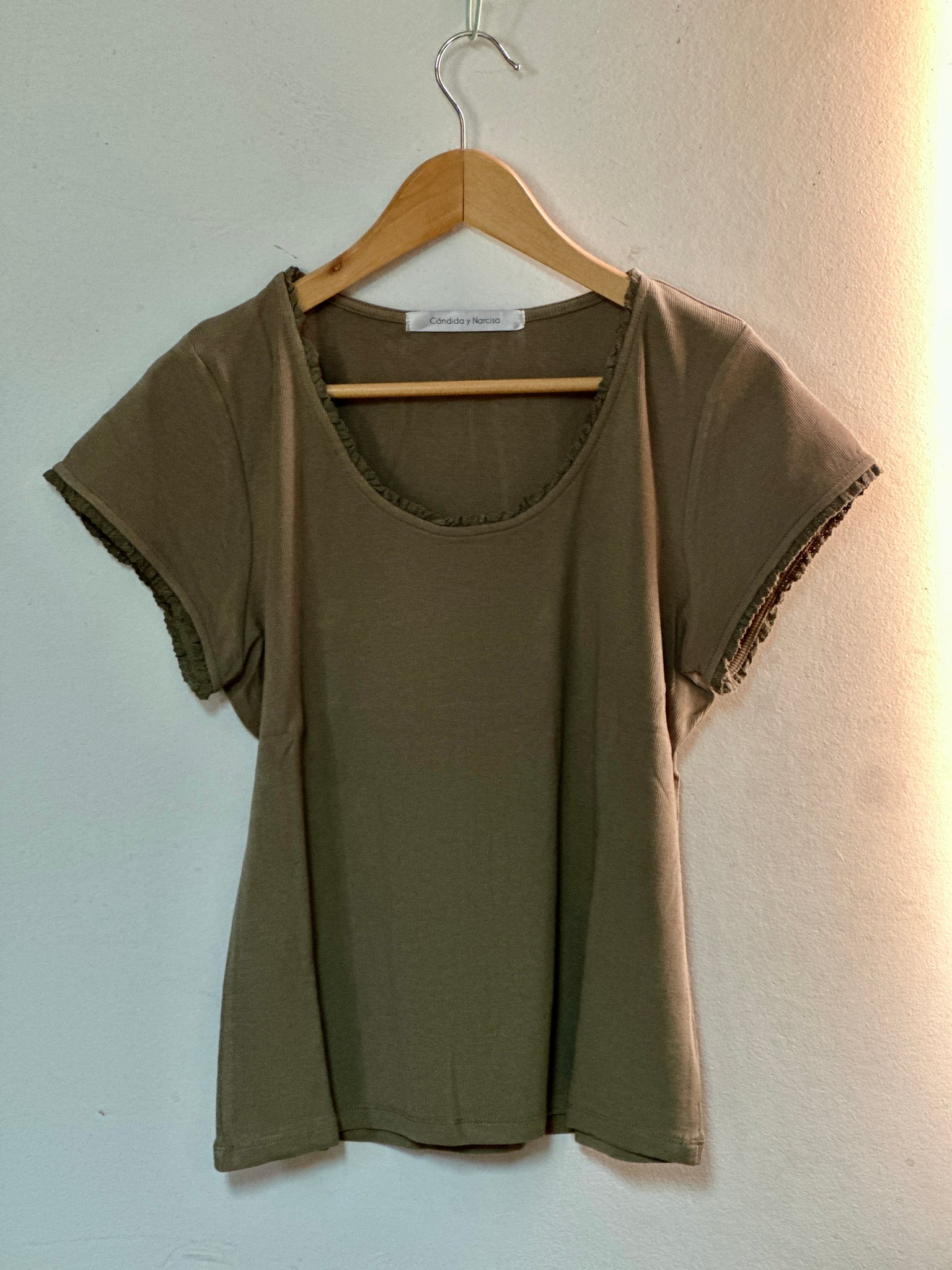 Polera de manga corta en algodón canutón y manga y cuello con mini vuelito.