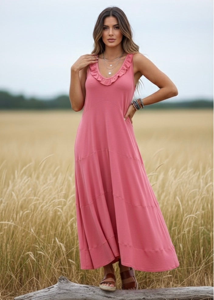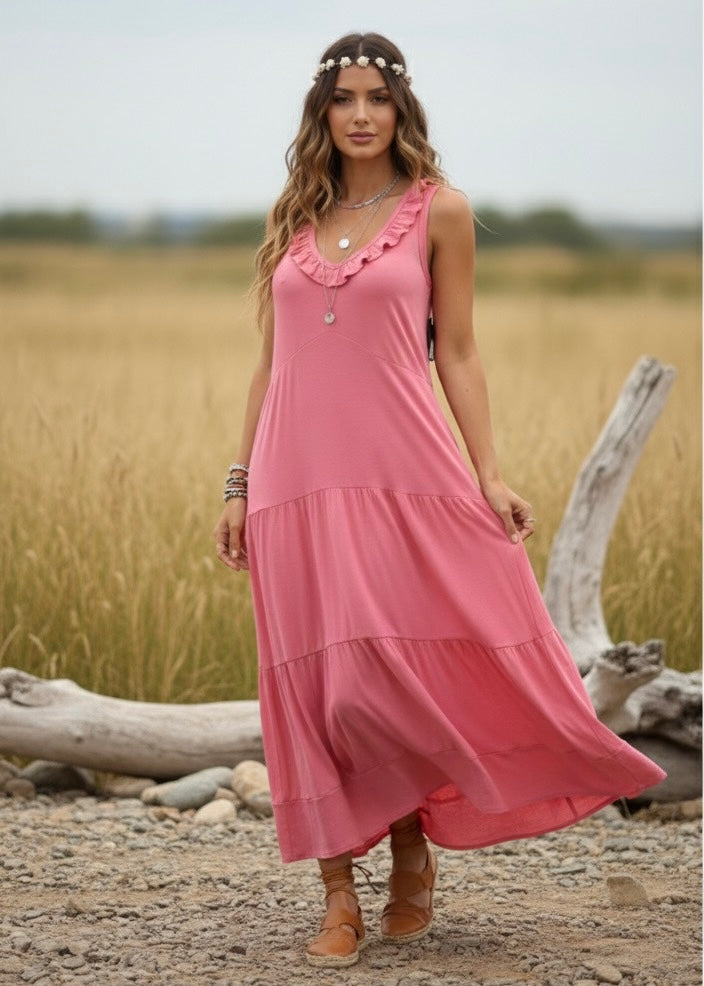 Vestido Canela, Hecho y Diseñado en Chile por Cándida y Narcisa, súper versátil porque puedes usarlo tanto para el día a día como para una ocasión mas formal con los accesorios que den el toque. Tiene el movimiento y frescura perfecto para el verano.
